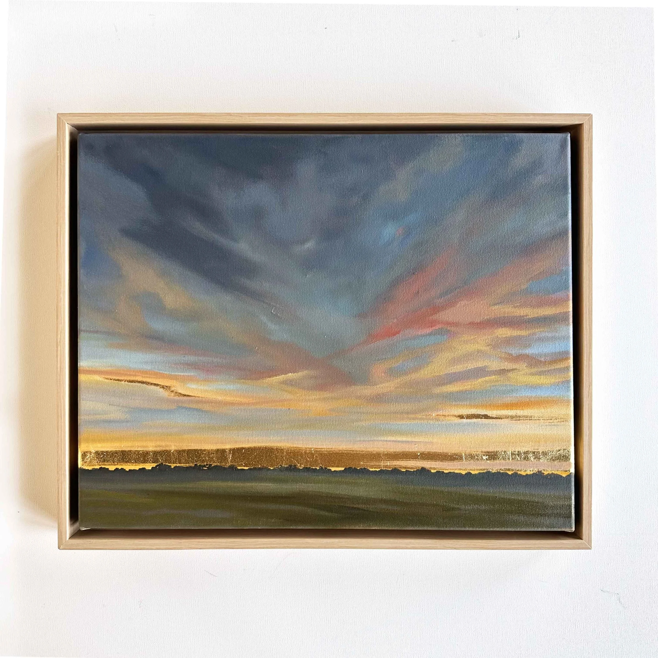 Custom framed in a natural finished, maple floater frame. Overall dimensions: 17” x 21” x 2”