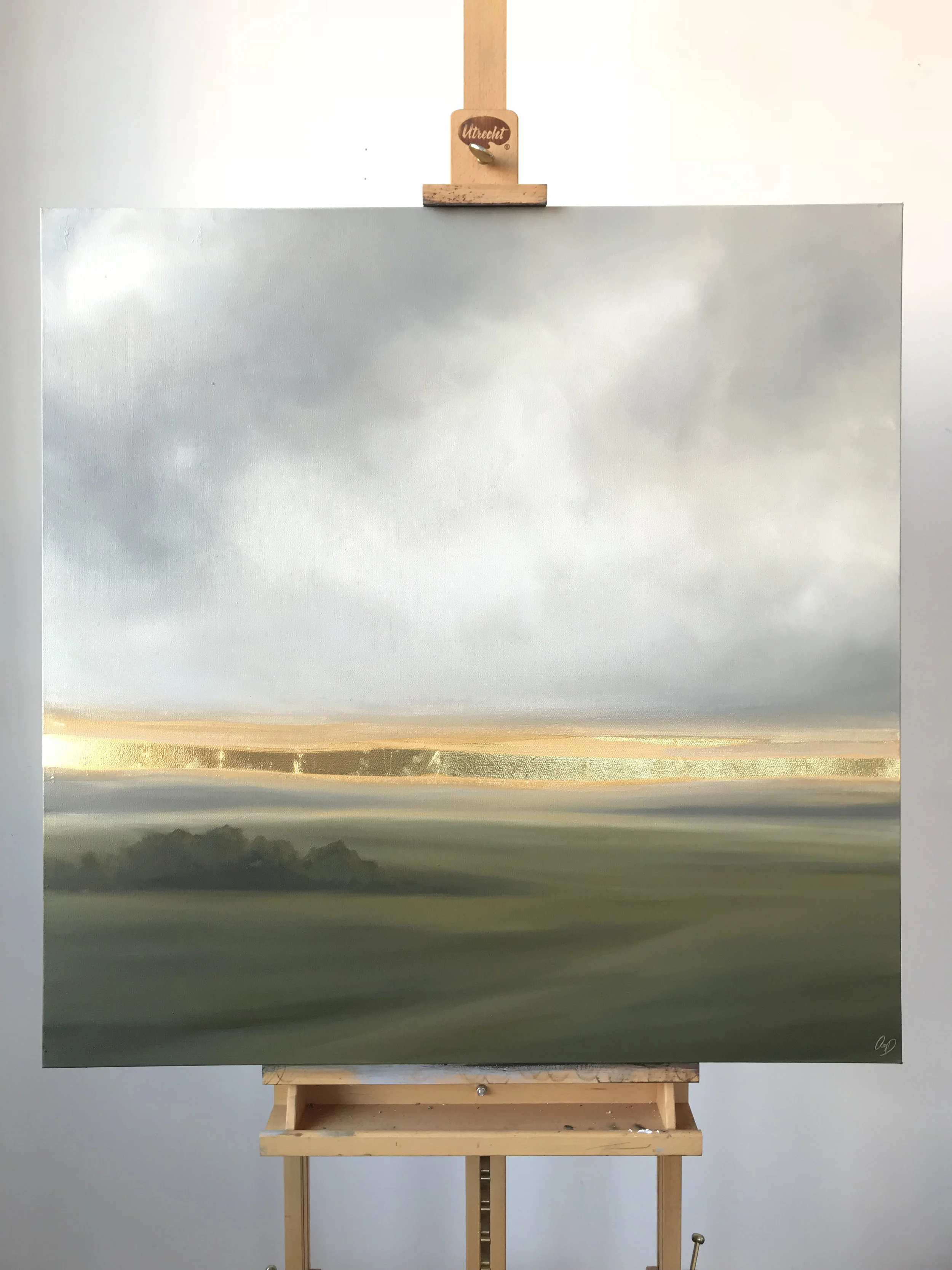The largest piece of the ATMOSPHERIC collection by Allie Dattilio, inspired by transition and the shifting seasons of life. Soft, ombre skies and endless horizons.