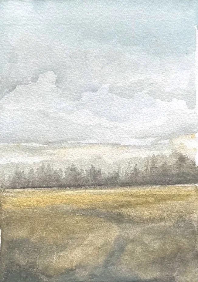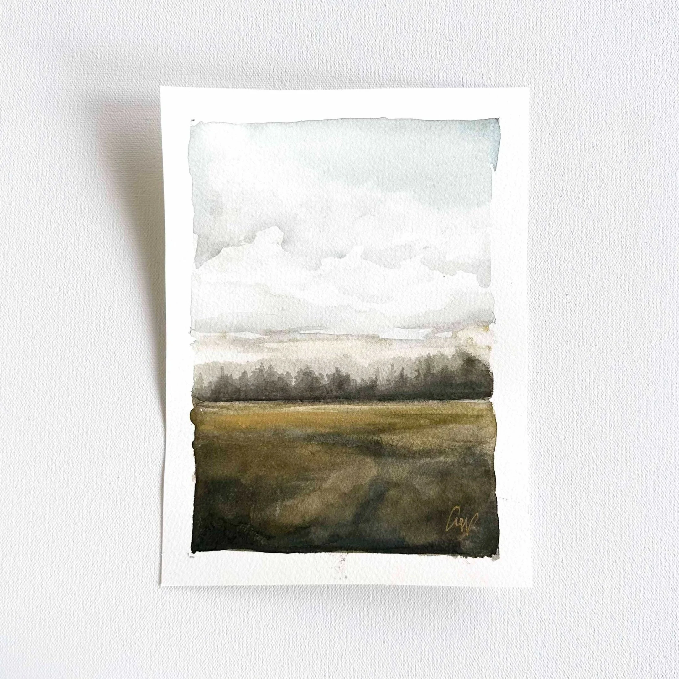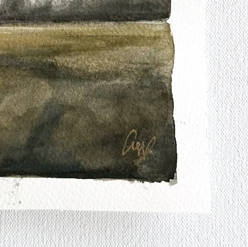 Part of the | The Watercolor Fields | collection— these paintings are inspired by the quiet, grace-filled moments in this fleeting season of motherhood. Soft, gentle skies and rolling fields of ochre and olive, with subtle shimmers of gold pigment that highlight the landscapes.