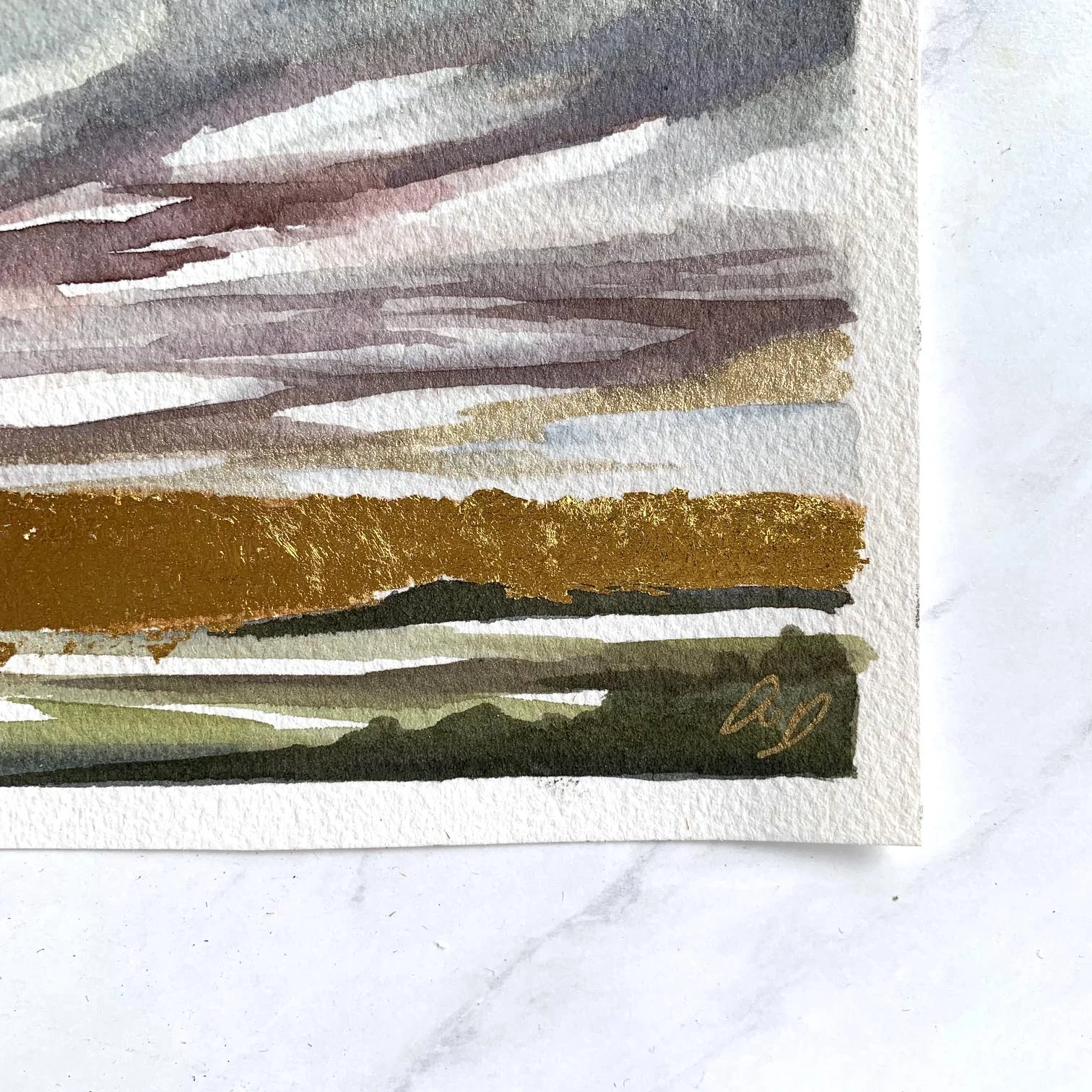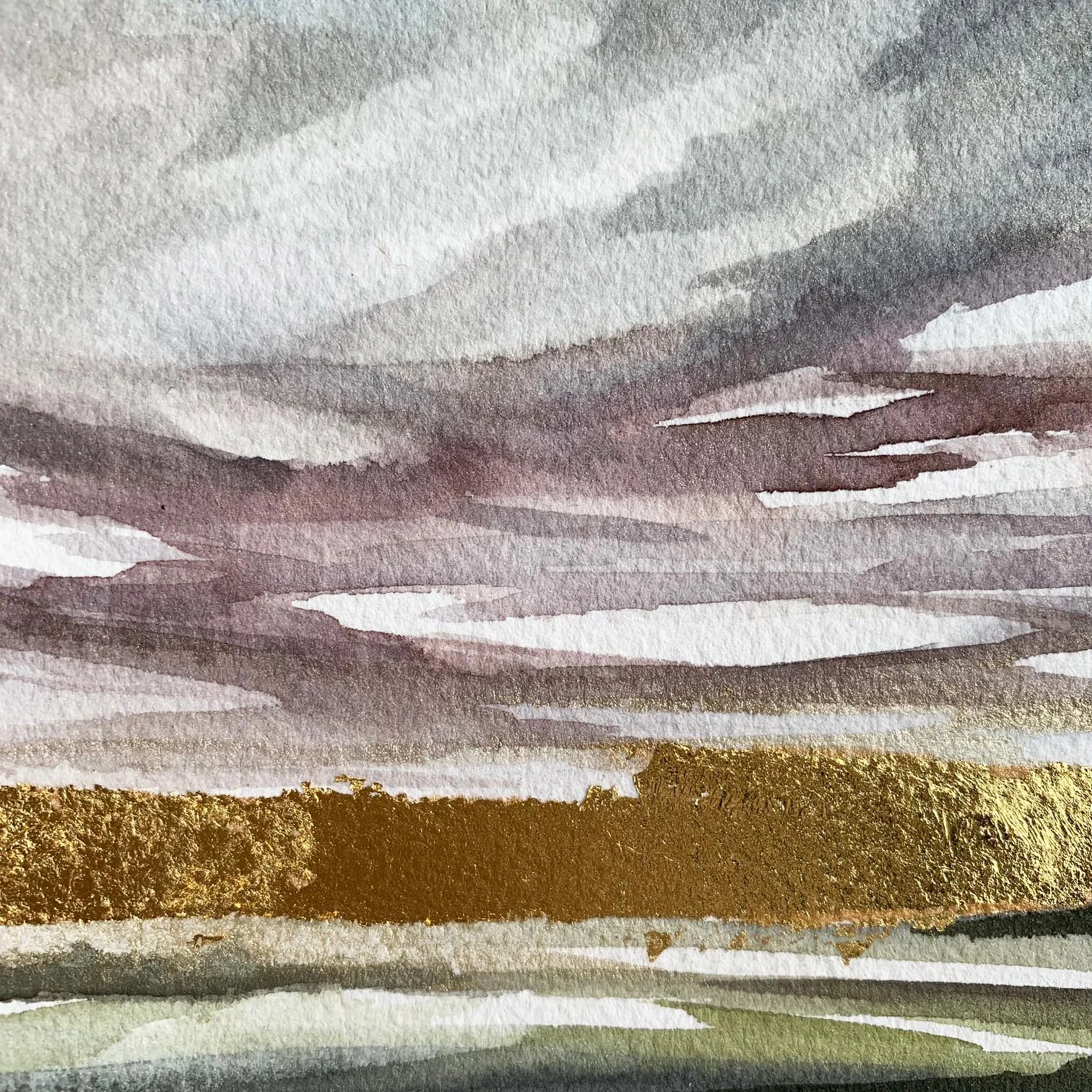 MEDIUM: Watercolor, 24k gold leaf, ink and pigment. Warm white paper, hand cut edges.