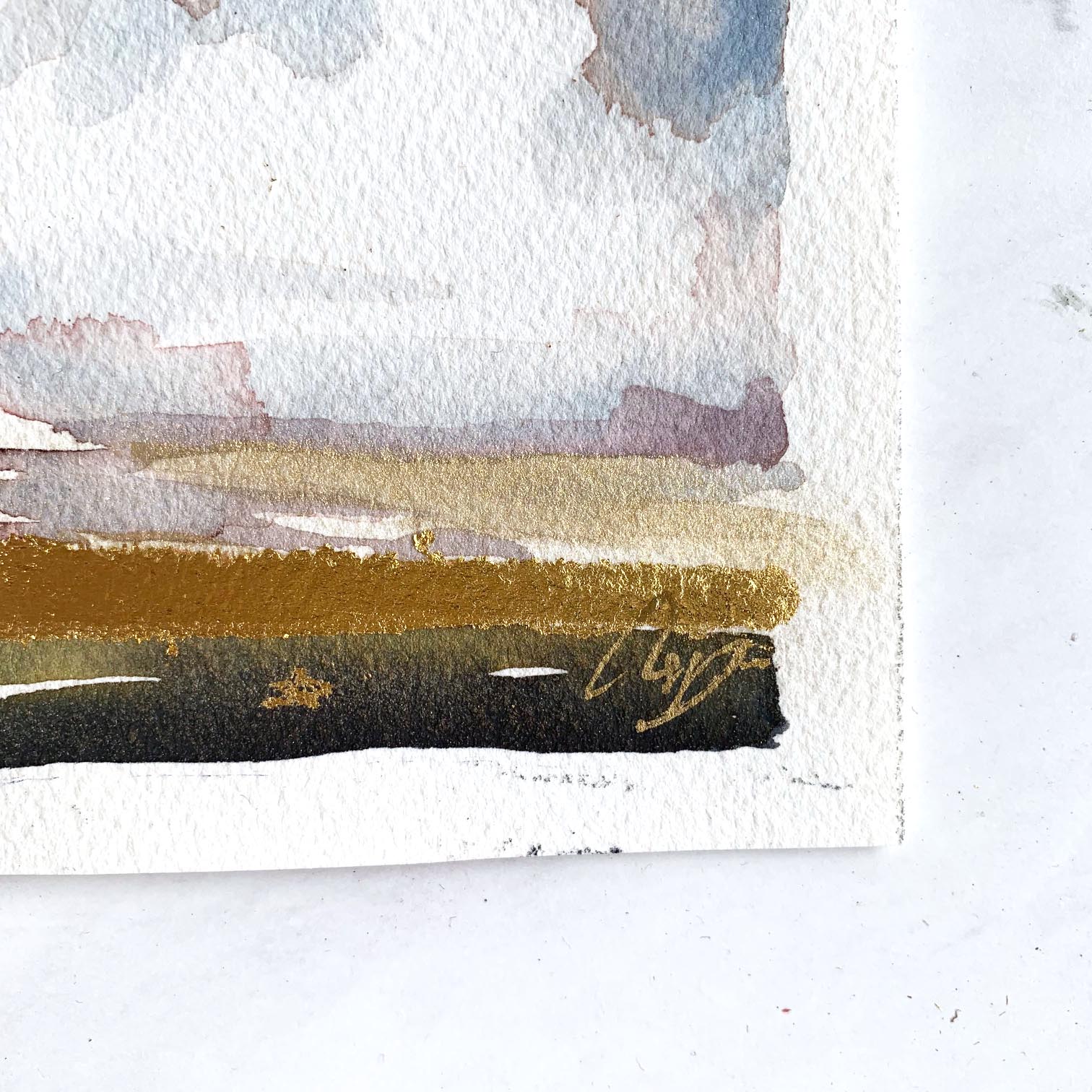 MEDIUM: Watercolor, 24k gold leaf, ink and pigment. Warm white paper, hand cut edges.
