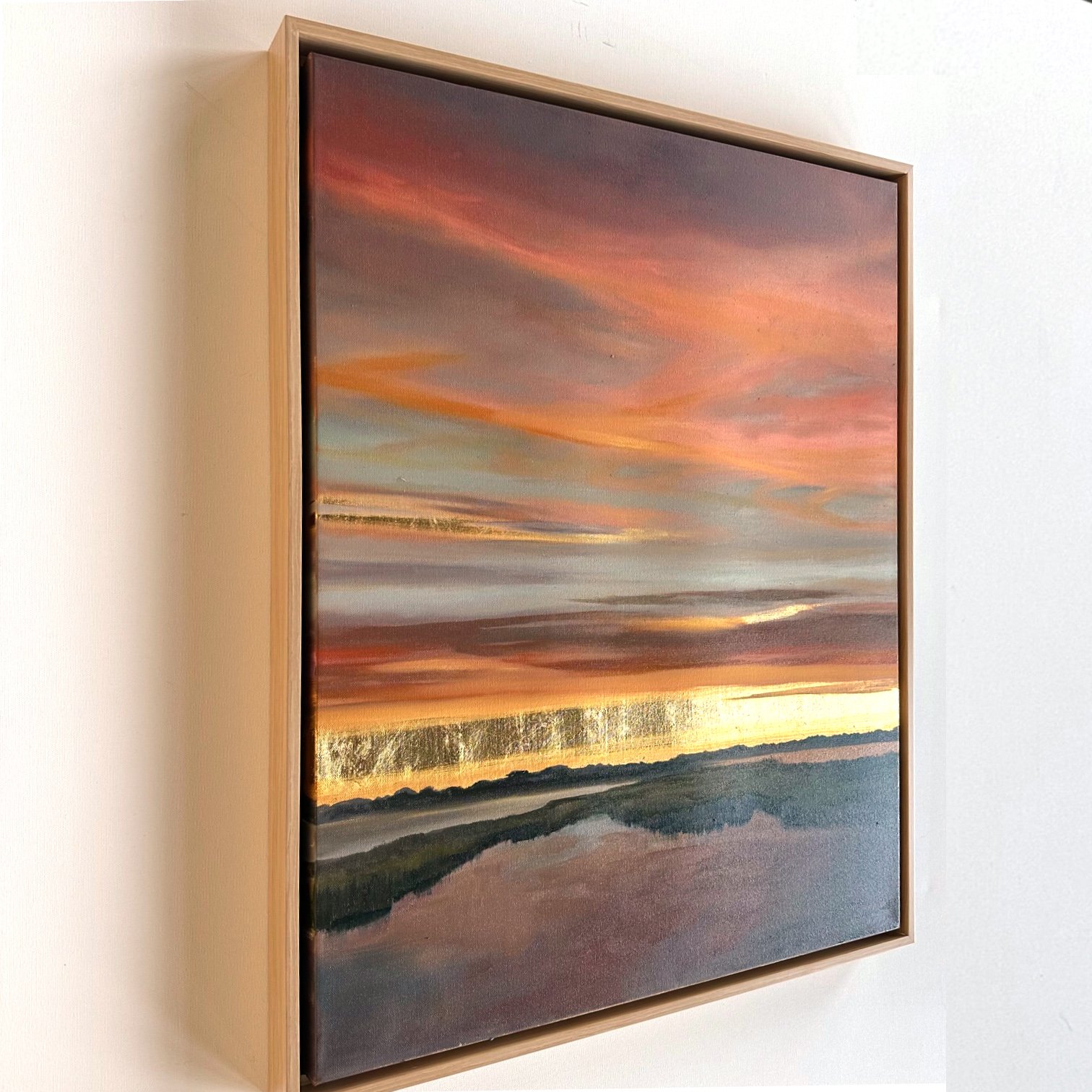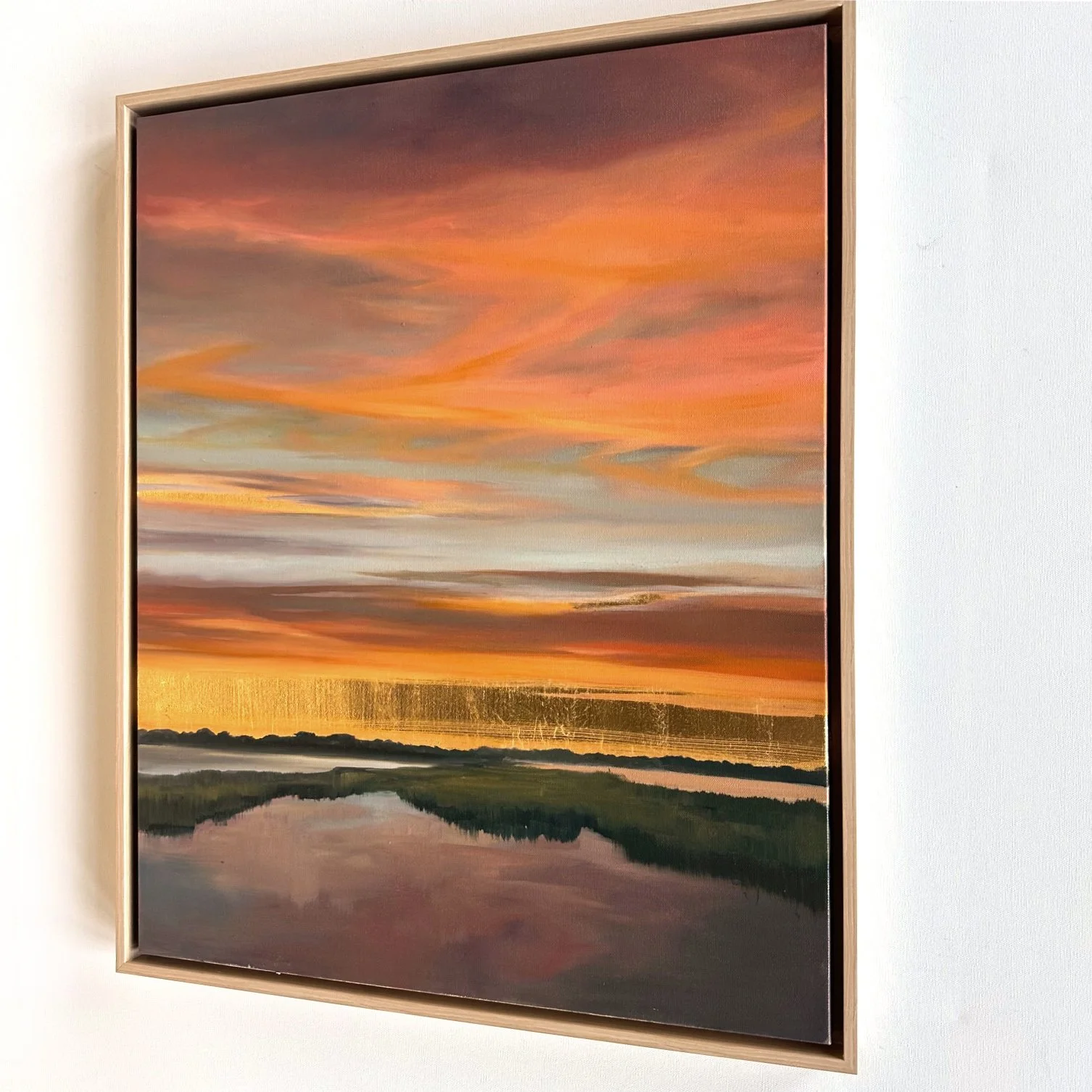 Custom framed in a natural finished, maple floater frame. Overall dimensions: 25” x 31” x 2”