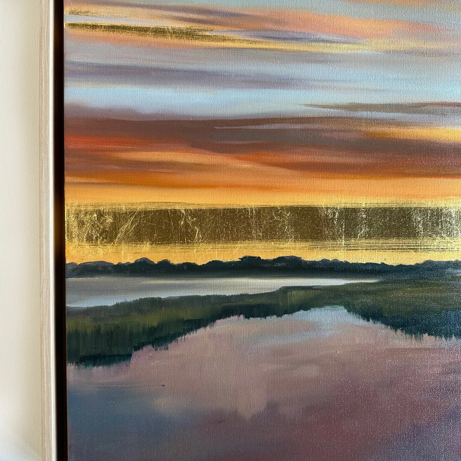 Oil paint and genuine 24k yellow gold leaf. Canvas: 24” x 30” x 1.5”.