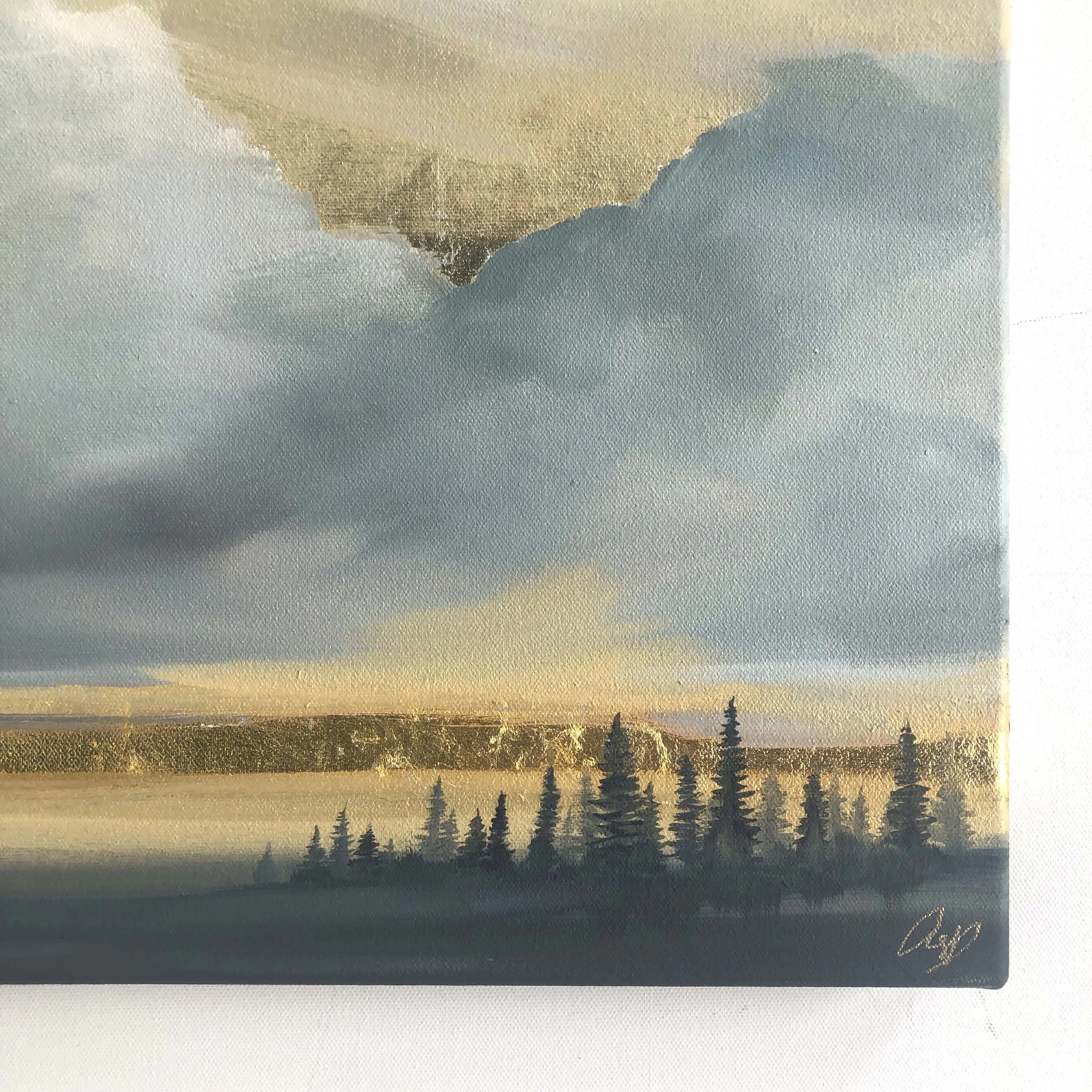 oil, 18k and 24k gold leaf on premier gallery-wrapped canvas, 16” x 20” x 1.5”