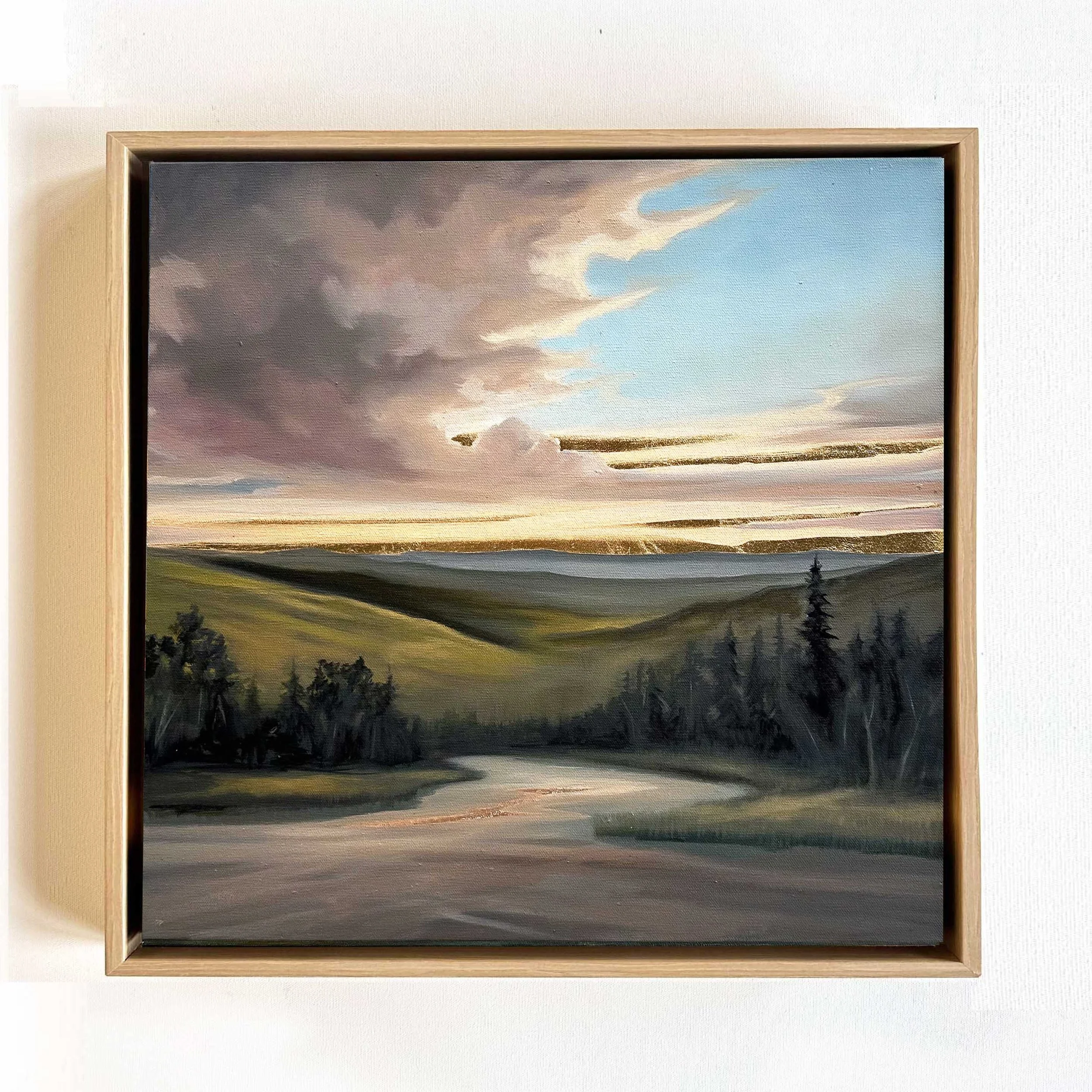 Custom framed in a natural finished, maple floater frame. Overall dimensions: 21” x 21” x 2”
