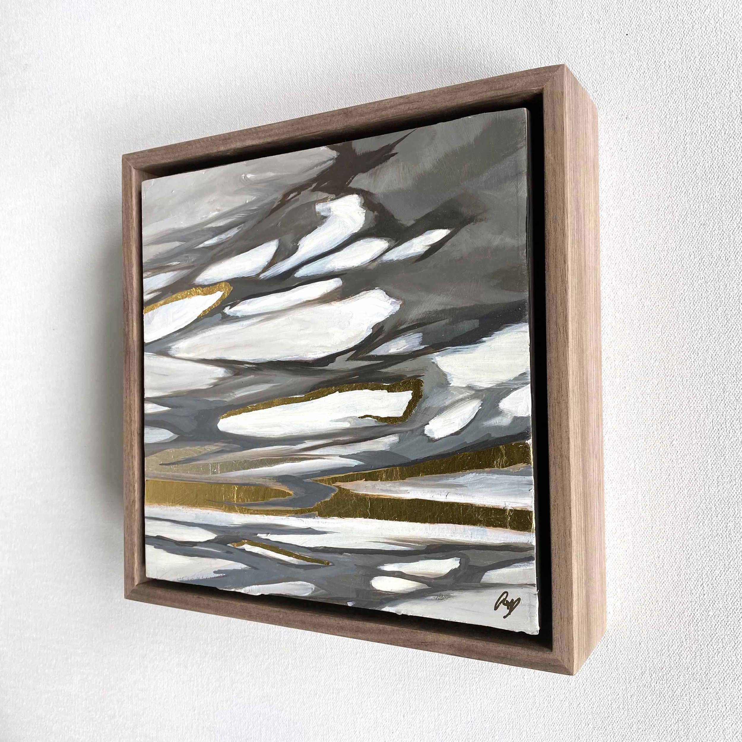 SURFACE: Cradled wood panel. Framed in a walnut floater frame.