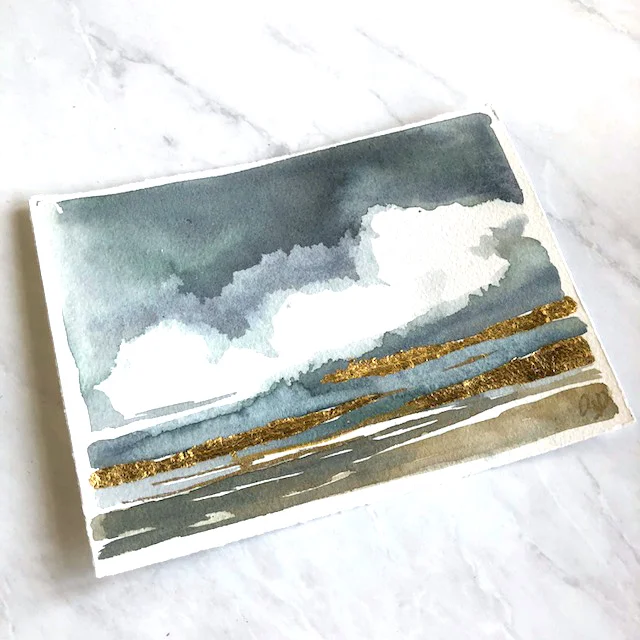 Watercolor, 24k gold leaf, ink and pigment. Warm white paper, hand torn edges.
