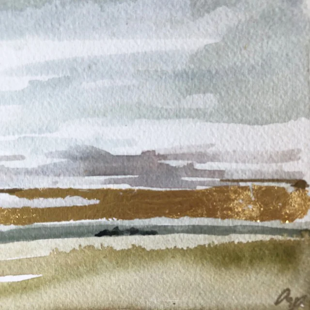 Watercolor, 24k gold leaf, ink and pigment. Warm white paper, hand torn edges.