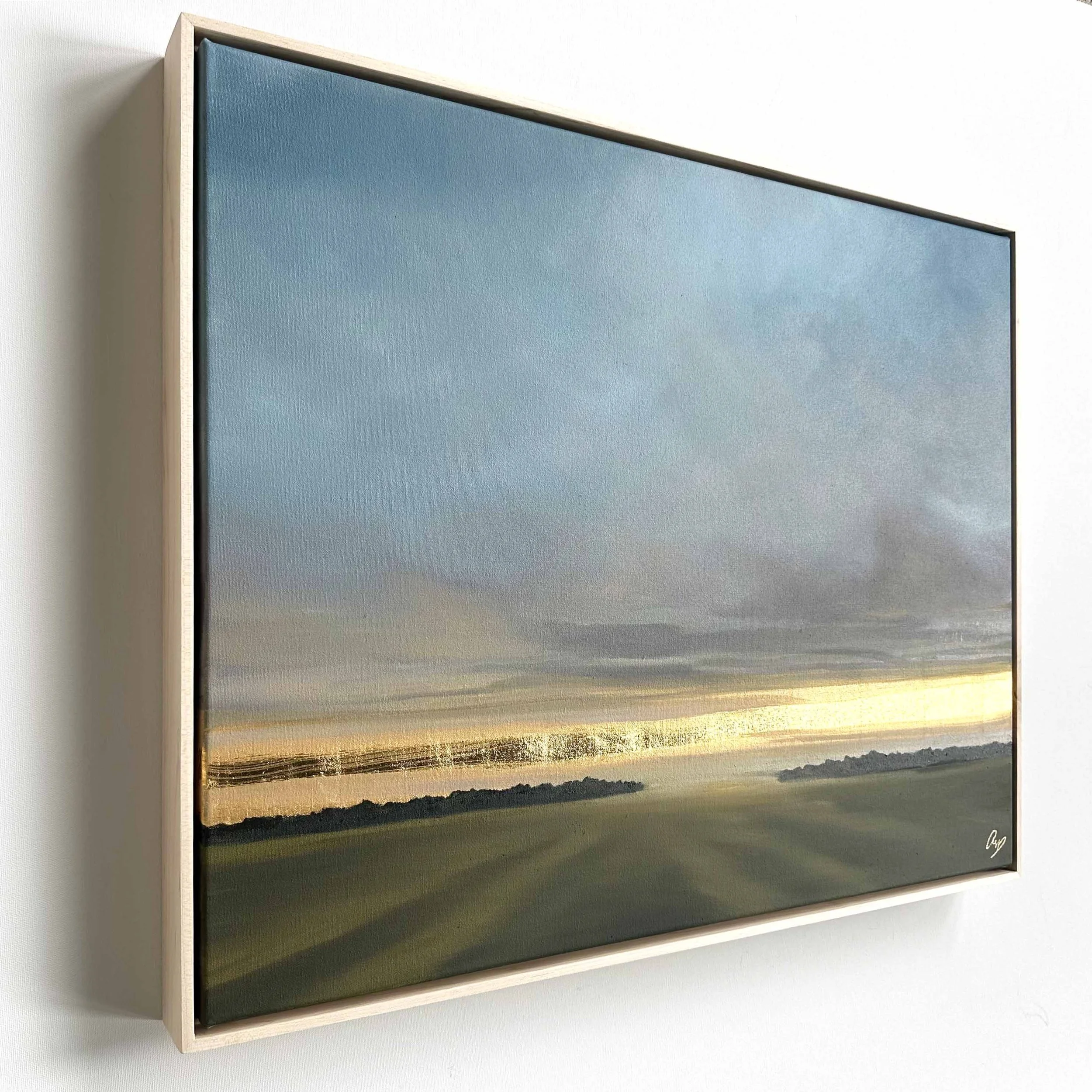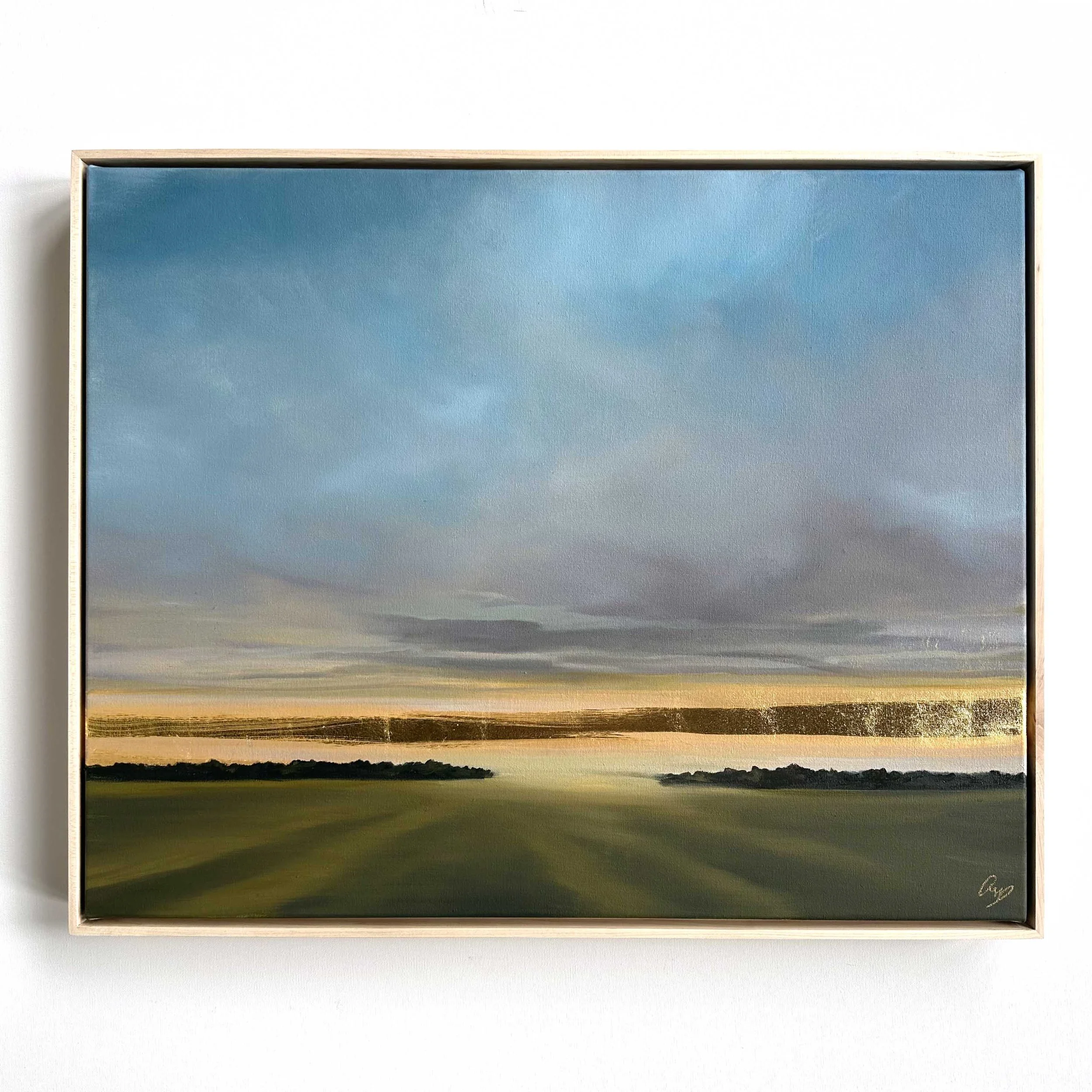 Custom framed in a natural finished, maple floater frame. Overall dimensions: 25” x 31” x 2”