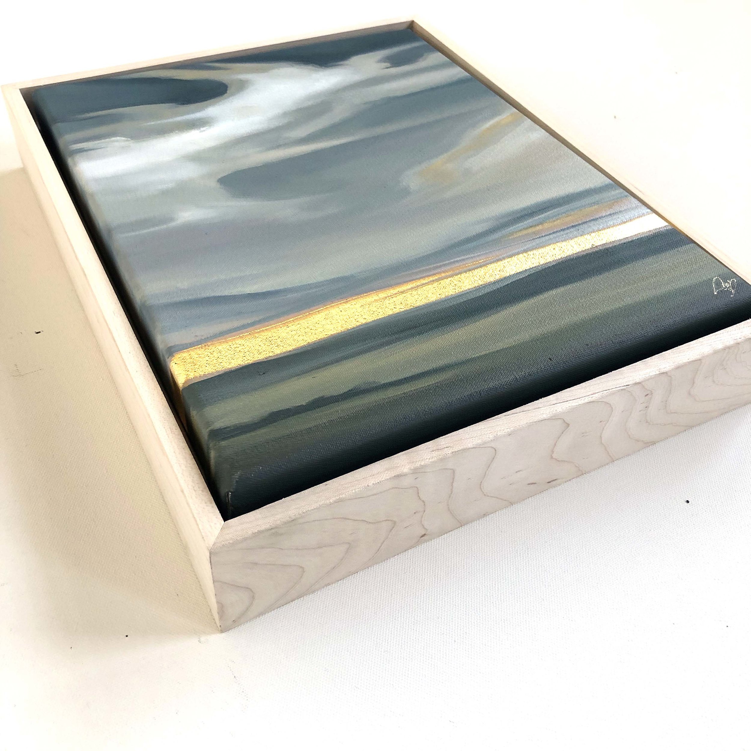 Framed in a natural maple floater frame, hand-built in the United States. Overall dimensions with frame: 12.5” x 15.5” x 2.5”